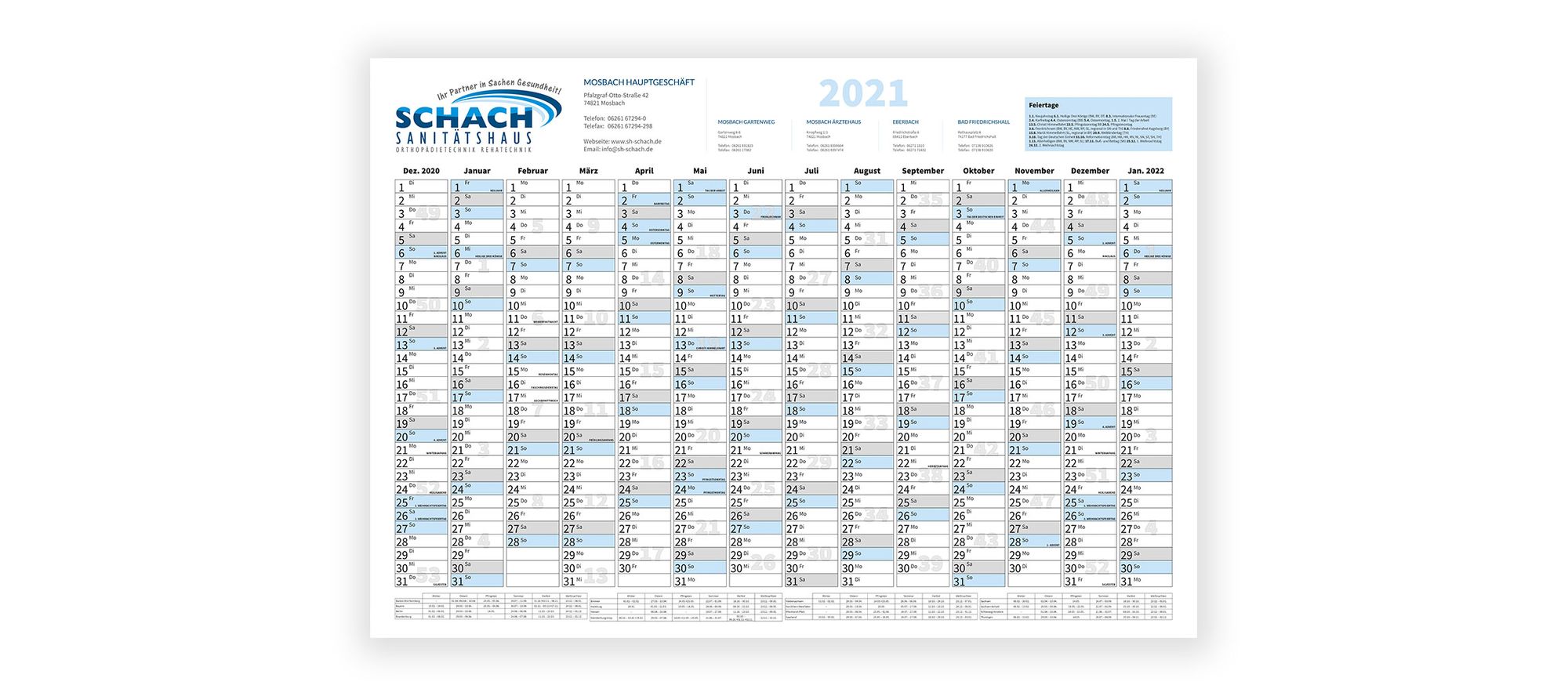 • Jahresplaner (Wandkalender)